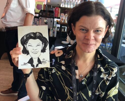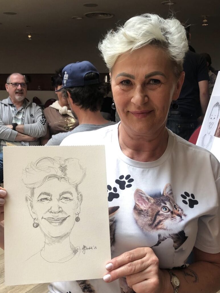 Jestem karykaturzystką, znaną w świecie eventowym jako Madame Karykatura, choć nikt tak naprawdę nie zna moich prawdziwych personaliów.